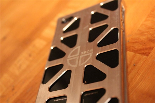 iPhoneケースの背面を高送り加工で仕上げ、ZECR First logoを全面に施したversion